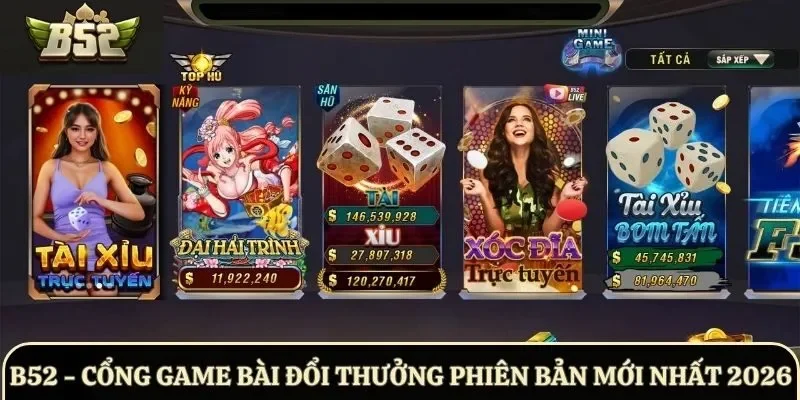 Kho game của B52Club bom tấn được sắp xếp hợp lý, phân chia rõ ràng theo từng sở thích của người dùng để bạn dễ dàng lựa chọn.